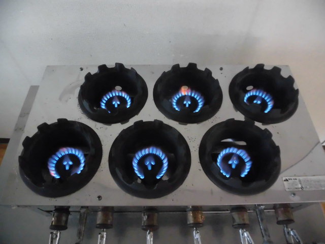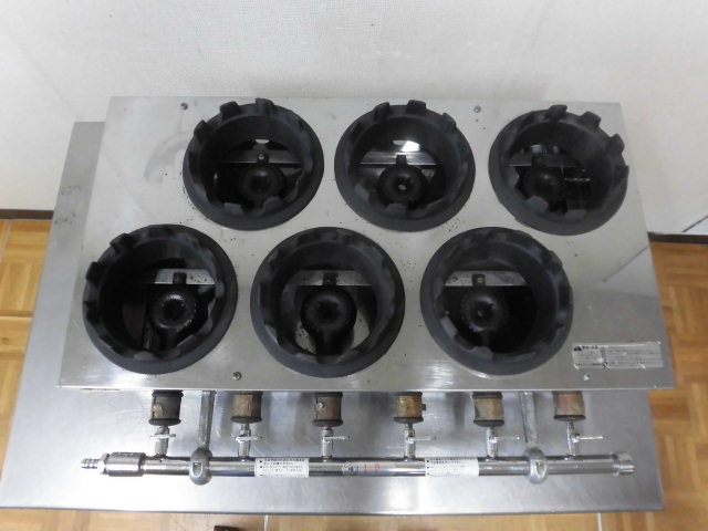中古厨房 業務用 秋元ステンレス工業 AK-6 釜めし用コンロ 6口 釜飯 LPガス プロパンガス バーナー6個 2列 W675×D470×H210mm