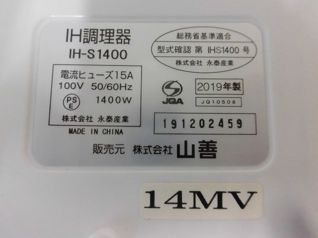 中古厨房 業務用 YAMAZEN 山善 卓上 1口 IHコンロ IH-S1400 100V IH調理器 ハイパワー 温度調節5段階 W300×D340×H60mm 2019年製 (4)