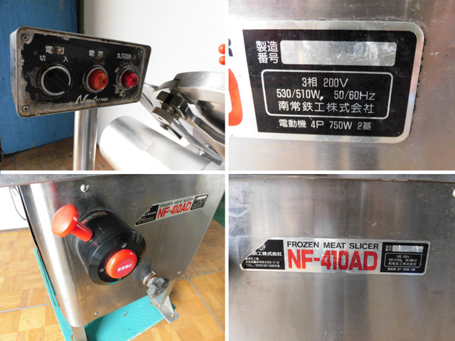 中古厨房 業務用 南常鉄工 なんつね 冷凍 ミート 肉 スライサー NF-410AD 三相 200V 冷凍肉 スライス厚み0〜30mm 丸刃直径400mm 65枚/分