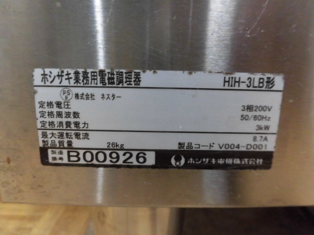 中古厨房 ホシザキ 業務用 1口 IHコンロ HIH-3LB ローレンジ スープレンジ 三相 200V 電磁 調理器 タイマー W450×D575×H420(BG570)mm