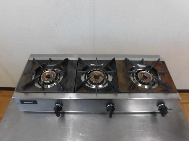 中古厨房 リンナイ 業務用 卓上 ガステーブル コンロ 3口 RSB-306A 都市ガス 圧電式 コンパクト W740×D310×H150mm 店舗 飲食店