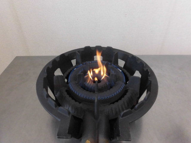 中古厨房 業務用 タチバナ製作所 1口 鋳物 二重 ガスコンロ TS-210H 都市ガス 羽根付 炊き出し W330×D500×H110mm