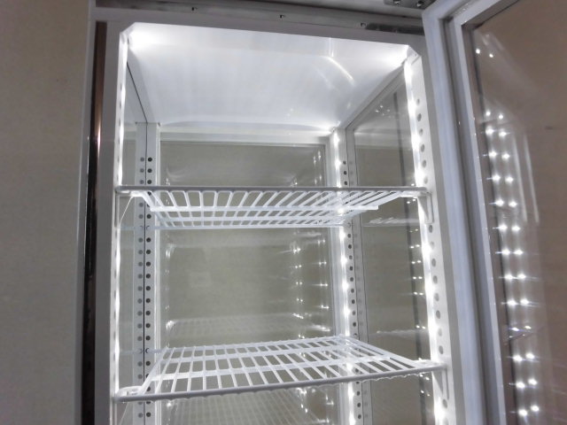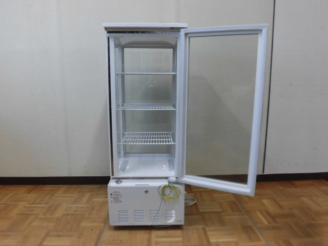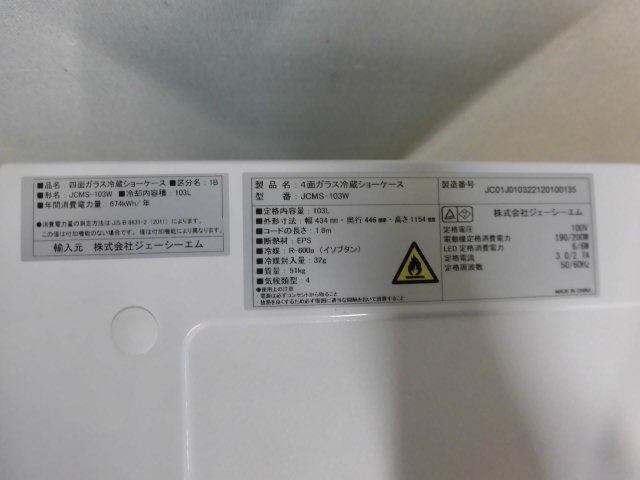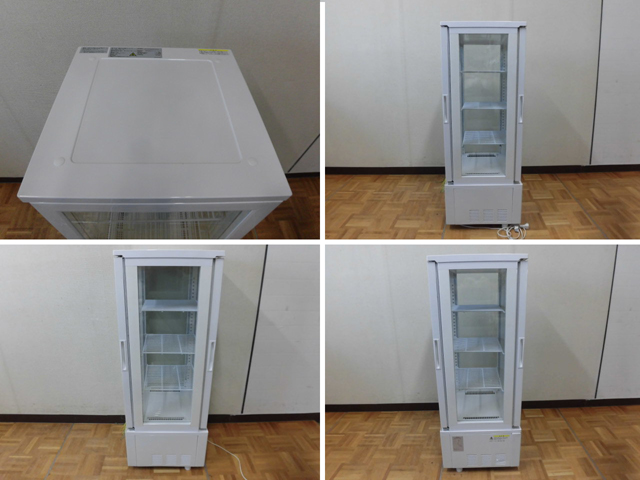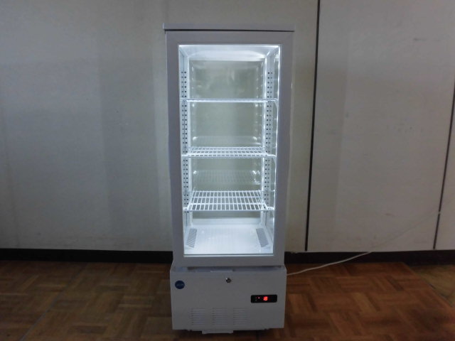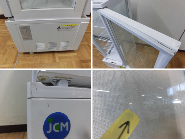 中古厨房 業務用 JCM ジェーシーエム 4面ガラス 縦型 冷蔵ショーケース JCMS-103W 100V 103L 2℃-12℃ 両面扉 キャスター LED照明 鍵 取説