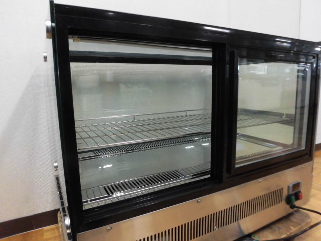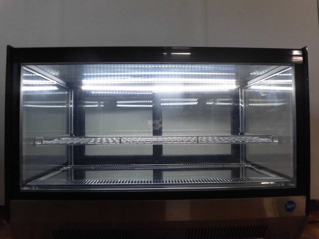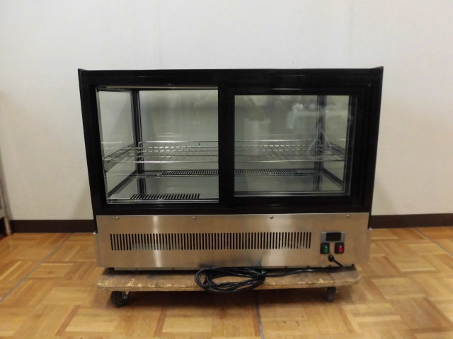 中古厨房 業務用 JCM 卓上 対面 角型 冷蔵ショーケース JCMS-70T 100V 70L ケーキケース 4面ガラス LED照明 後方引き戸 2021年製
