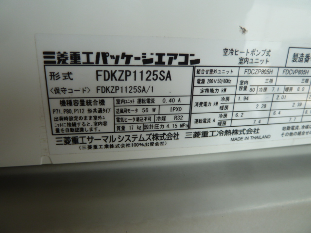 三菱電機 業務用 壁掛形 パッケージ エアコン FDKV805H5SA 3馬力 シングル 三相 200V ハイパーインバーター 標準型 ワイヤレス 2021年製