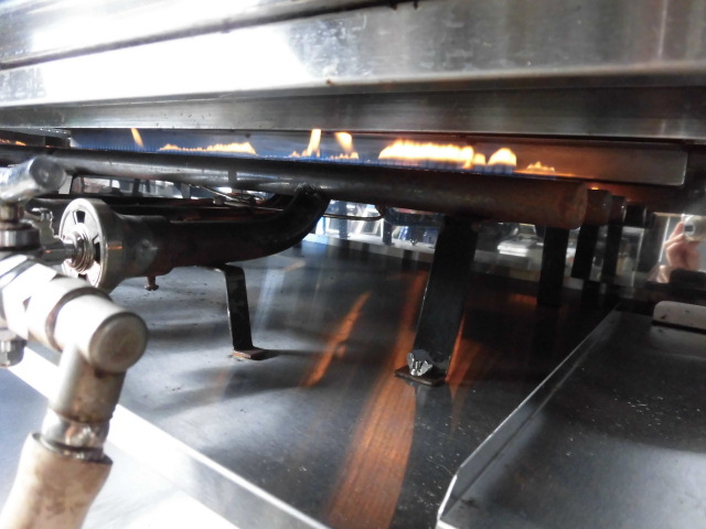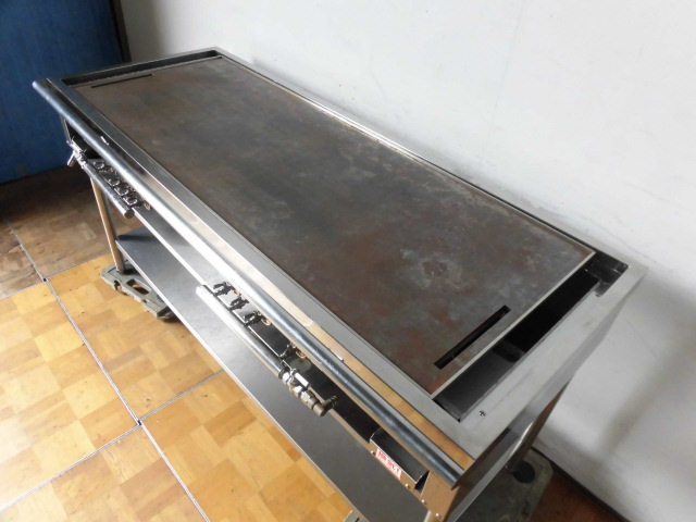 中古厨房 業務用 グリドル 鉄板焼き台 都市ガス 6連 厚み10mm バーナー6本 お好み焼き 焼きそば 鉄板焼き 屋台 祭り W1600×D645×H790mm