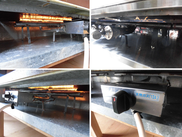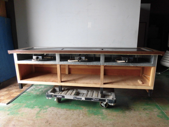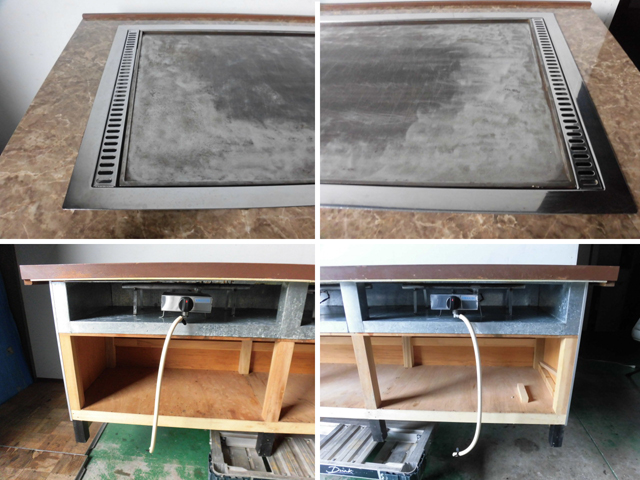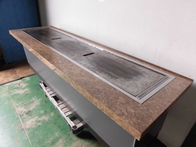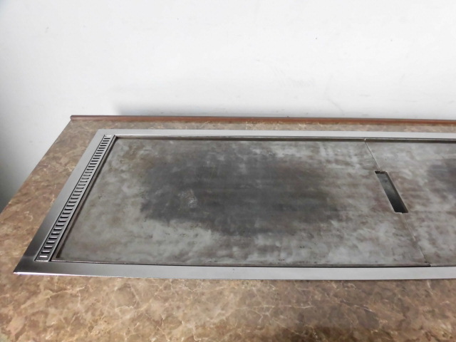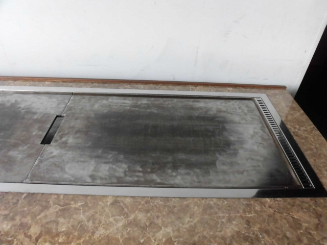 中古厨房 業務用 鉄板 焼台 カウンター グリドル 都市ガス 鉄板3枚 収納棚付 木製 ステーキ W2600×D755×H760mm 厚さ10mm 引き取り限定