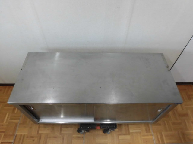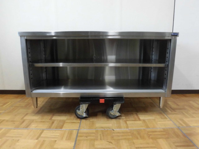 中古厨房 業務用 マルゼン 食器棚 食器庫 ステンレス スライド扉 W1500×D600×H800mm+ 調整脚+30mm 棚板1枚 店舗 飲食店