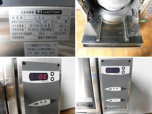 中古厨房 HATTORI 業務用 ベーシック 立型炊飯器 2段式 LGS-100 100V LPガス プロパンガス 精米14kg 連続炊飯 カウントダウンタイマー