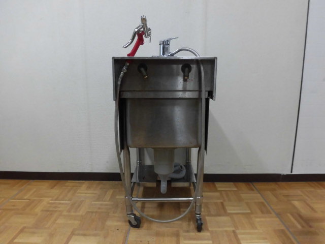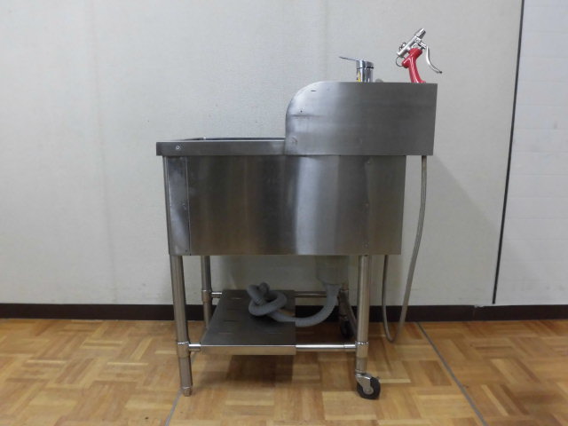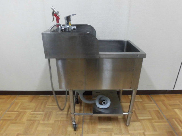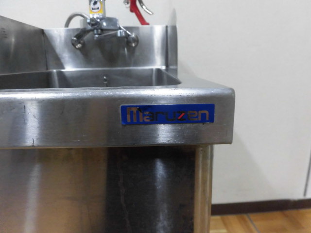 中古厨房 業務用 マルゼン 1槽シンク 流し台 洗浄ガン 蛇口付き ステンレス W450×D750×H800(BG950)mm 深さ 285mm 脚+40mm 店舗 洗い場