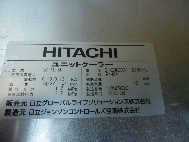 中古厨房 日立 業務用 小型冷凍機 プレハブ冷凍庫 冷凍ユニット ユニットクーラー KRX-T1AV US-T1.5MH 三相 200V 取説 リモコン 2023年製