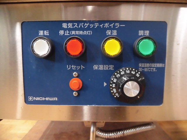 中古厨房 ニチワ 業務用 電気 1槽 ゆで麺機 ENBS-600NMP 三相 200V 3テボ スパゲッティ ボイラー 蛇口付き W600×W600×H795mm 2022年製
