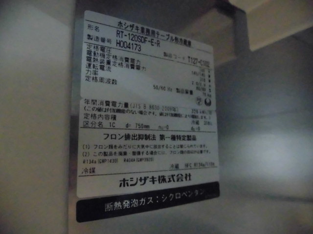 中古厨房 ホシザキ 業務用 台下 冷蔵庫 コールドテーブル RT-120SDF-E-R 100V 318L 庫内灯付 インバーター 右ユニット 2018年製