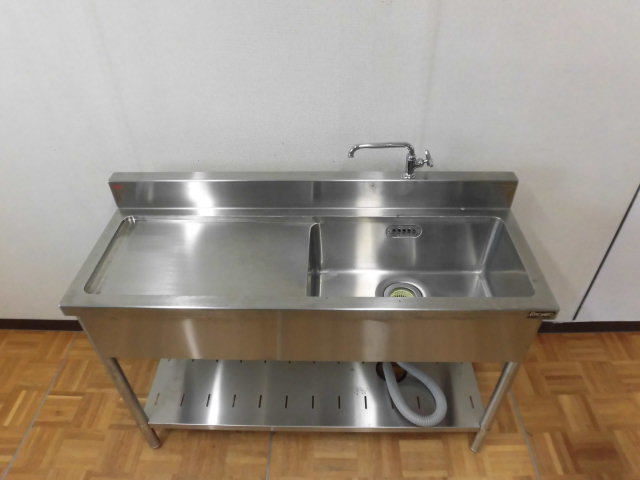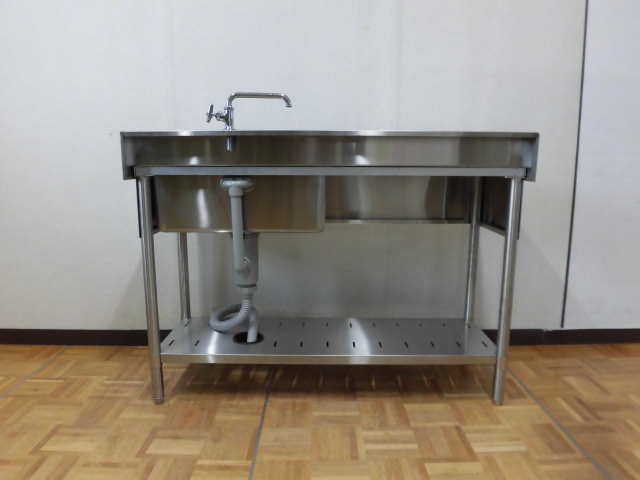 中古厨房 業務用 1槽シンク ステンレス 流し台 W1200×D450×H800mm 作業台付き 深さ210mm 調整脚+30mm