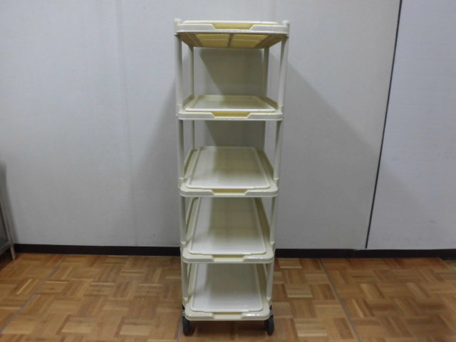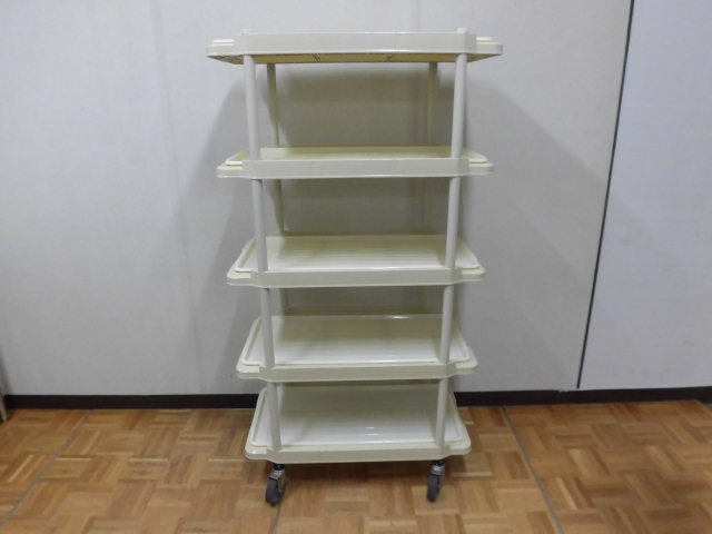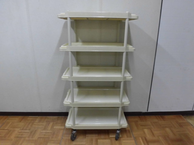 中古厨房 業務用 KAWAJUN トレイカート プラスチック 5段 ワゴン 配膳 カート サービスワゴン トレー5枚 キャスター W400×D800×1409mm