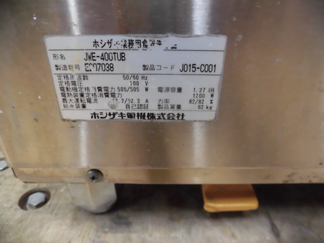 中古厨房 業務用 ホシザキ 食器洗浄機 食洗機 JWE-400TUB 100V 50/60Hz アンダーカウンター 貯湯タンク内蔵 全国使用可 40ラック