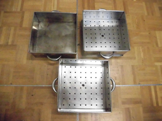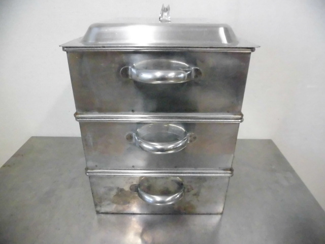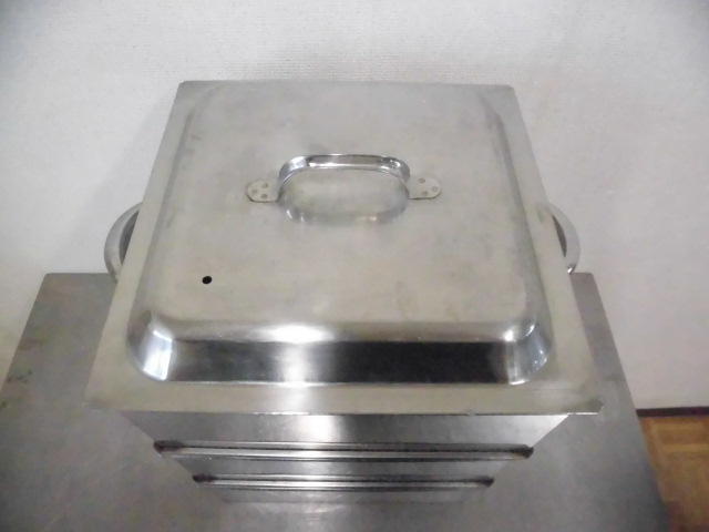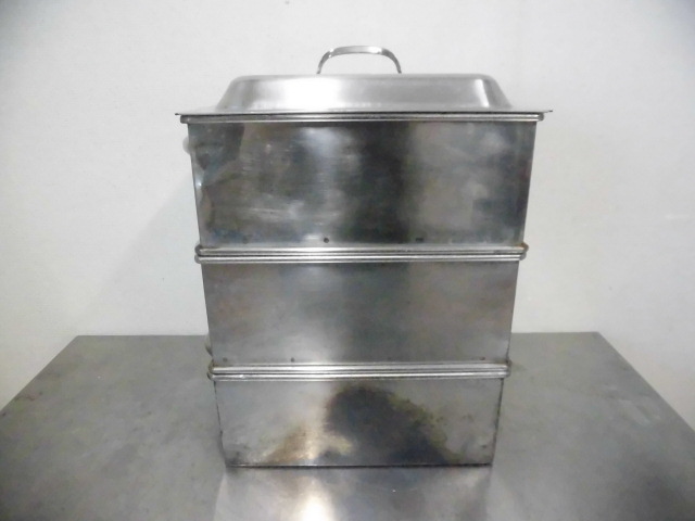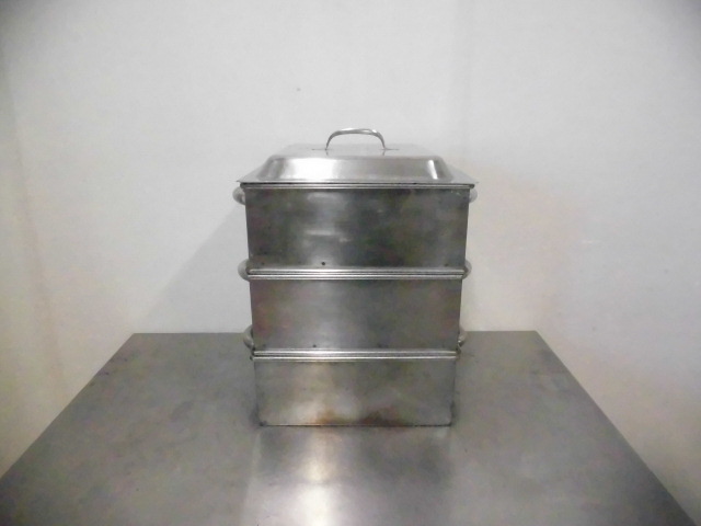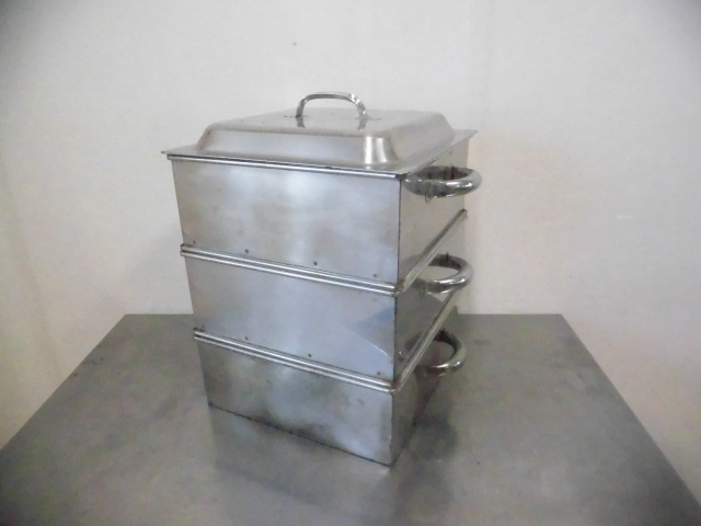 中古厨房 業務用 ステンレス 角型 蒸し器 3段 取っ手付 W320×D400×H440mm 蓋付 せいろ 中華 飲茶 仕出し 料亭 旅館 飲食店 店舗