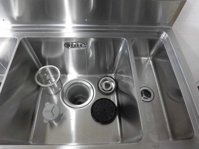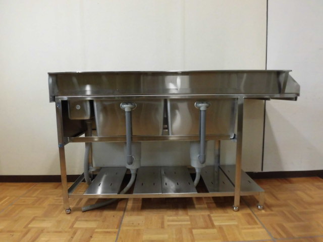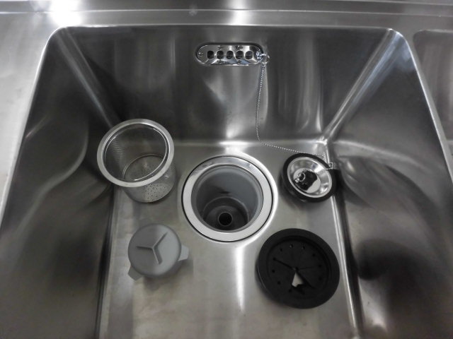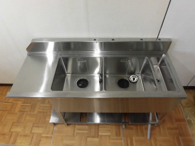 中古厨房 業務用 マルゼン ソイルド 2槽シンク ダストシンク付 ステンレス W1650×D670×H840(BG990)mm 深さ14cm 脚+15mm 店舗 調理場