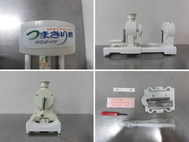 中古厨房 業務用 千葉工業所 卓上 手動つまきり君 NEWツマカッター ハンドルタイプ 自動送り装置 替え刃付き W370×D140×H230mm