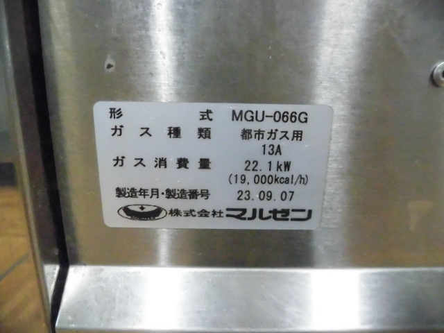 中古厨房 業務用 マルゼン うどん釜 角槽タイプ MGU-066G 都市ガス 58L 1回22食 160食/h ゆで麺機 圧電式 2023年製