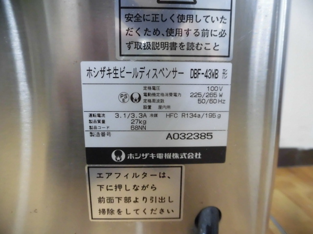 中古厨房 ホシザキ 業務用 ビールサーバー 生ビールディスペンサー 2口 DBF-43WB 100V アサヒ・サッポロ・サントリー対応 減圧弁