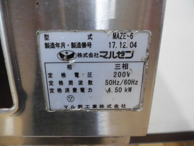 中古厨房 業務用 マルゼン 電気式 全自動餃子焼器 ギョーザ 架台付き MAZE-6 三相200V 50/60z W410×D600×H790(BG940)mm 2017年製