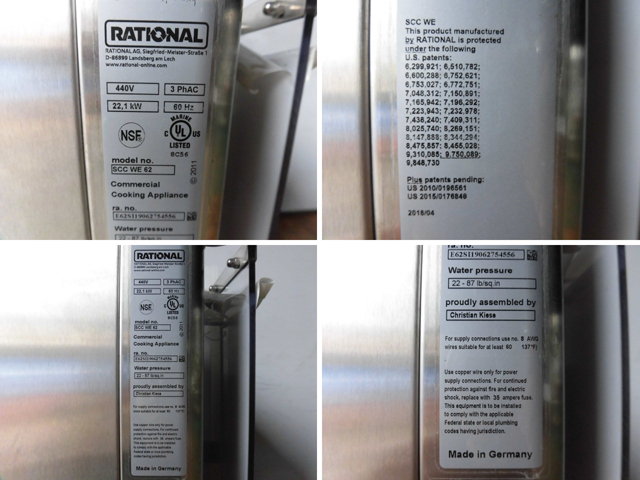 未使用品 厨房 ラショナル RATIONAL 業務用 電気 スチーム コンベクションオーブン SCCWE62 三相 440V 60Hz専用 右開き 海外仕様 2018年製