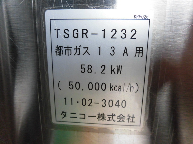 中古厨房 タニコー 業務用 ガスレンジ ウルティモシリーズ TSGR-1232 都市ガス オーブン 5口 コンロ ガステーブル W1200D600H790(BG990)mm