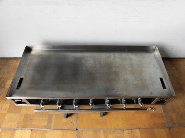 中古厨房 業務用 グリドル 鉄板焼き台 LPガス プロパンガス 7連 W1450 D560 H260mm お好み焼き 焼きそば 鉄板焼 ステーキ 厚み15mm 2022年