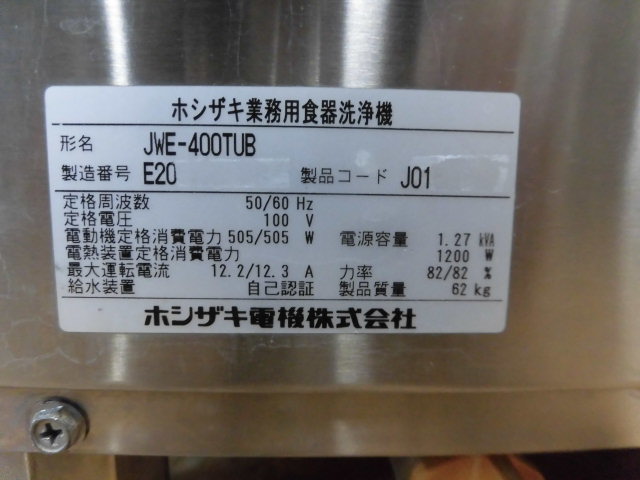 中古厨房 業務用 ホシザキ 食器洗浄機 食洗機 JWE-400TUB 100V 50/60Hz アンダーカウンター 貯湯タンク内蔵 全国使用可 40ラック