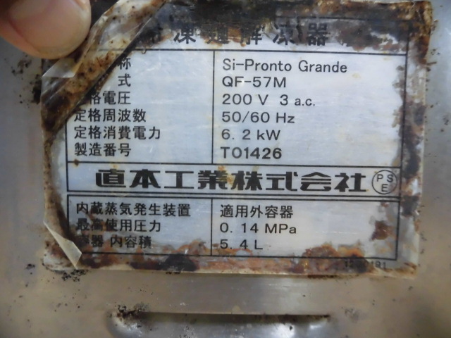 中古厨房 業務用 直本工業 冷凍麺解凍機 電気式 Si-Pronto Grande QF-57M 三相 200V 5.4L 解凍 ラーメン パスタ W340×D560×H490mm