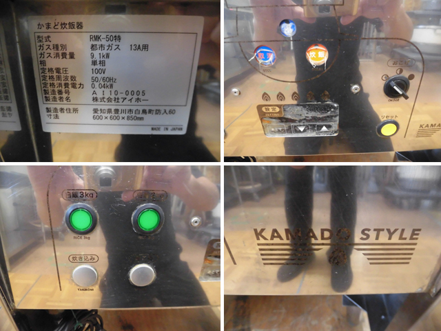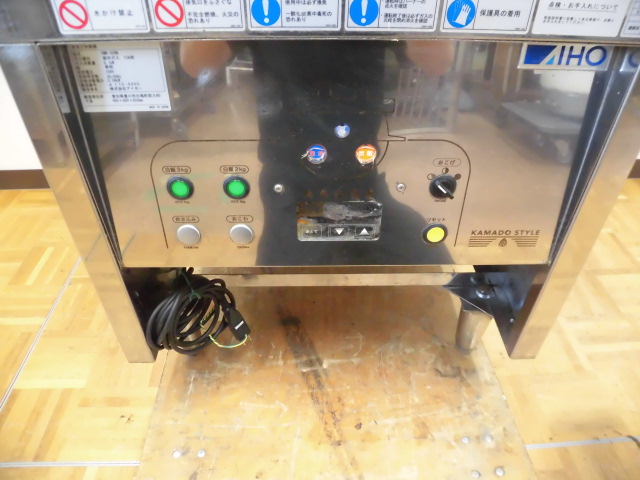 中古厨房 業務用 AIHO アイホー かまど 炊飯器 都市ガス RMK-50特 100V 白飯3kg/白飯2kg おこげ 切替スイッチ W600×D600×H795mm