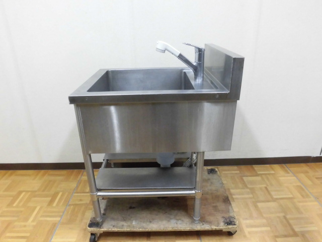 中古厨房 業務用 1槽シンク ステンレス 流し台 蛇口付 W600×D750×H800(BG950)mm 深さ29cm 店舗 調理場
