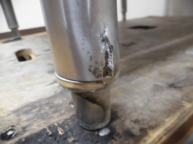 ・正面手前右足、支柱の一部が裂けています。