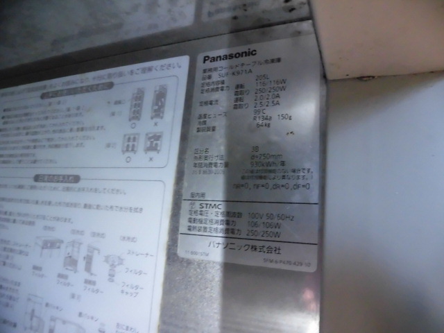 中古厨房 業務用 パナソニック Panasonic 1ドア 台下冷凍庫 フリーザー 左開き SUF-K971A 100V 205L エコナビ W900×D750×H800mm 2017年