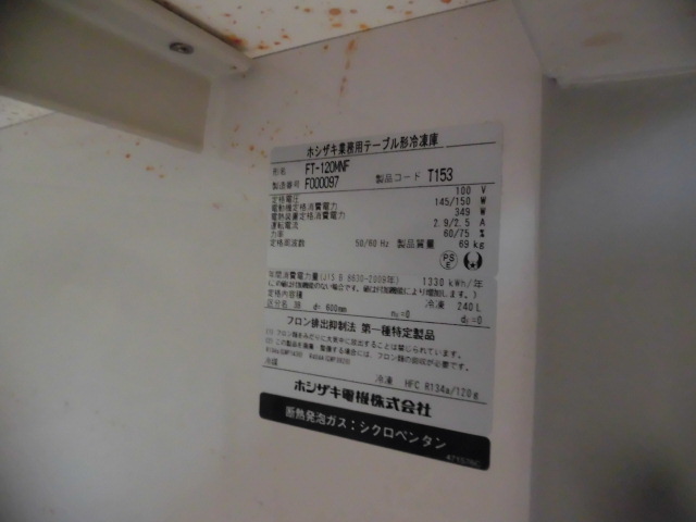中古厨房 ホシザキ 業務用 台下 冷凍庫 コールドテーブル フリーザー FT-120MNF 100V 240L -7℃〜-23℃ W1200×D600×H800mm 店舗 飲食店