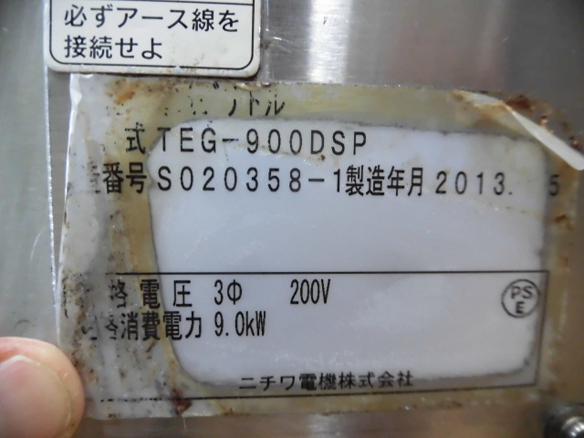 中古厨房 ニチワ 業務用 卓上 電気グリドル 鉄板焼き台 TEG-900DSP 三相 200V 0℃〜300℃ デジタル表示 W900(960)×D600×H300(BG360)mm