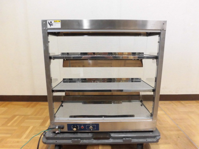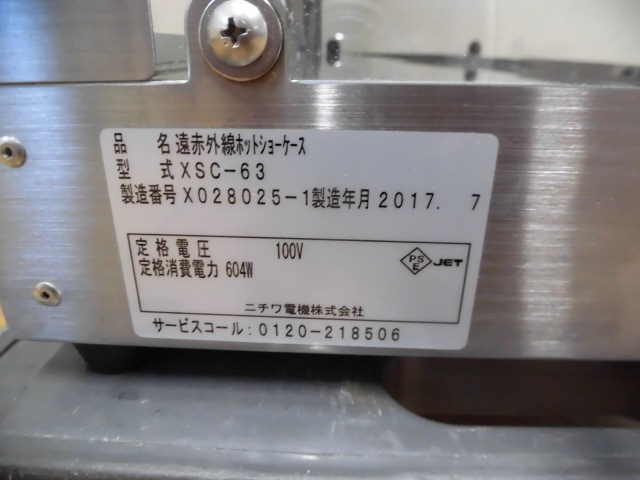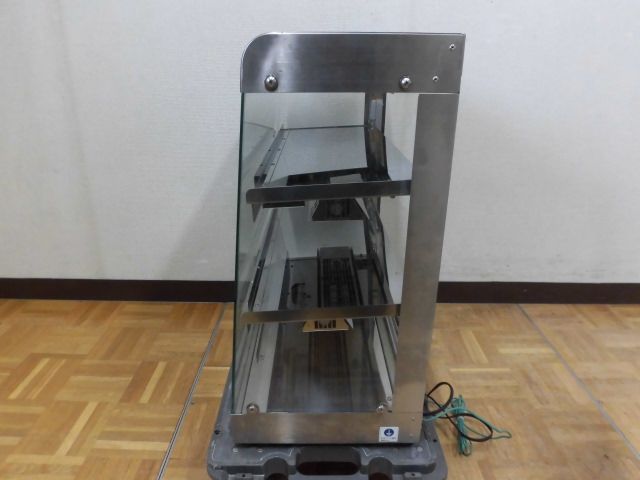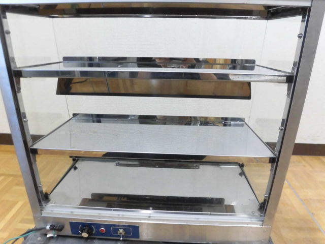 中古厨房 業務用 ニチワ 電気 ホットショーケース XSC-63 100V 3段 前面・側面ガラス 保温 遠赤外線ヒーター サーモスタット 2017年製