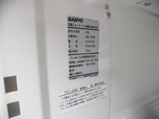 中古厨房 サンヨー 業務用 縦型 冷蔵ショーケース ビールショーケース SMR-SK120 100V 215L 中ビン143本 大ビン94本 右開き キャスター付