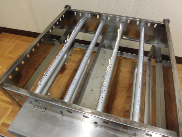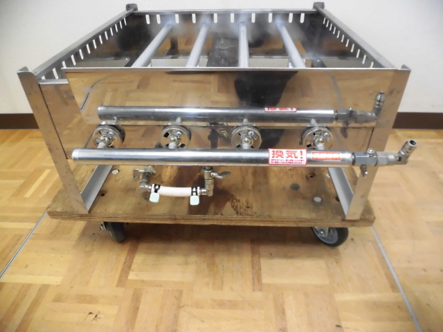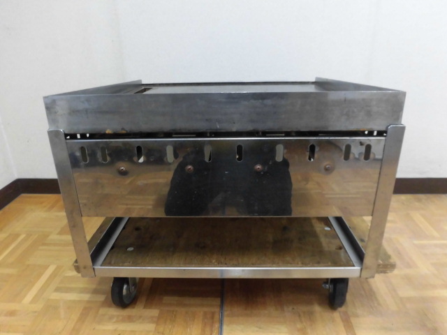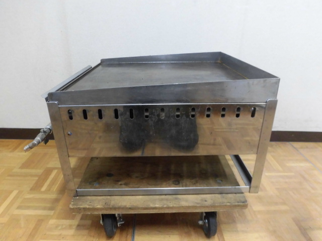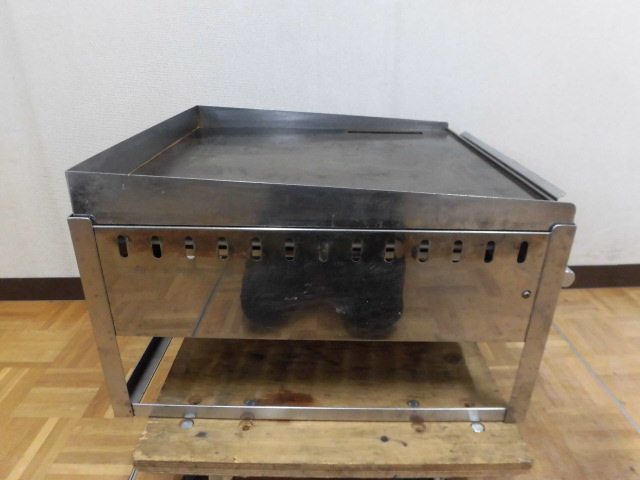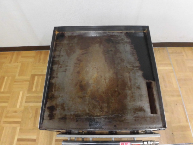 中古厨房 業務用 卓上 鉄板グリドル 鉄板焼き台 バーナー4本 都市ガス W590×D590×H375mm 鉄板厚み20mm ステーキ お好み焼き 海鮮焼き