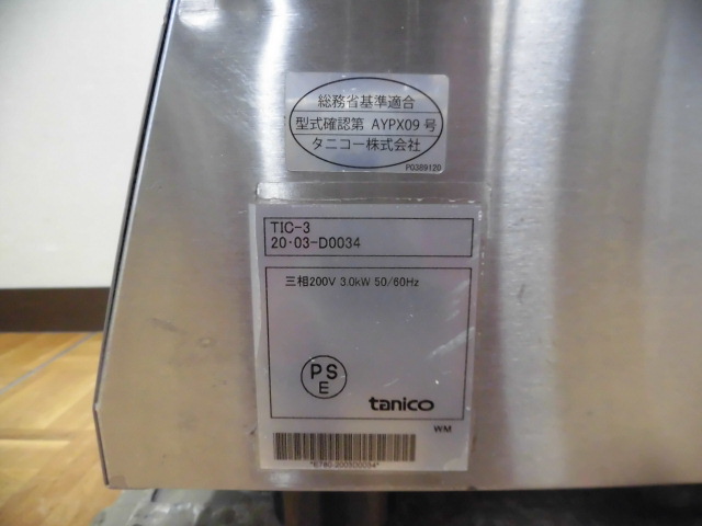 中古厨房 タニコー 業務用 卓上 IHコンロ 電気 電磁 調理器 1口 TIC-3 三相 200V W450×D600×H240(BG400)mm セラミックプレート 2020年製