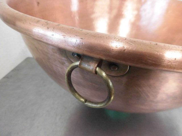 中古厨房 MAUVIEL France 業務用 ボウル 銅鍋 銅ボウル 製菓 洋菓子 和菓子 ジャム さわり鍋 片側取っ手付き W460×D460×H240mm 内径43cm