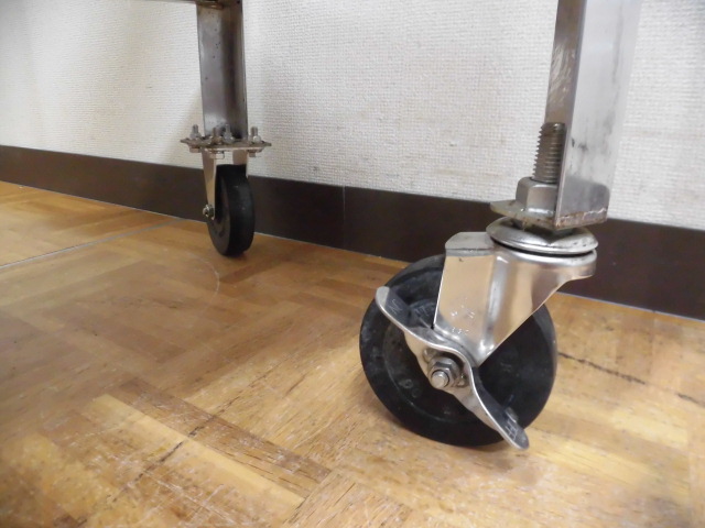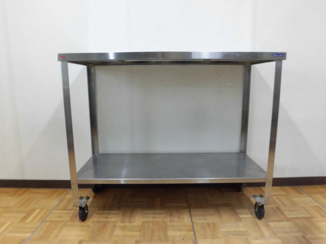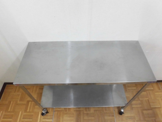 中古厨房 業務用 マルゼン ステンレス キャスター付 作業台 (4) W1200×D500×H1000mm ストッパー 調理場 店舗 飲食店 板金