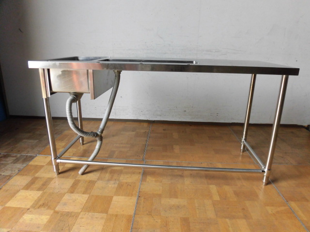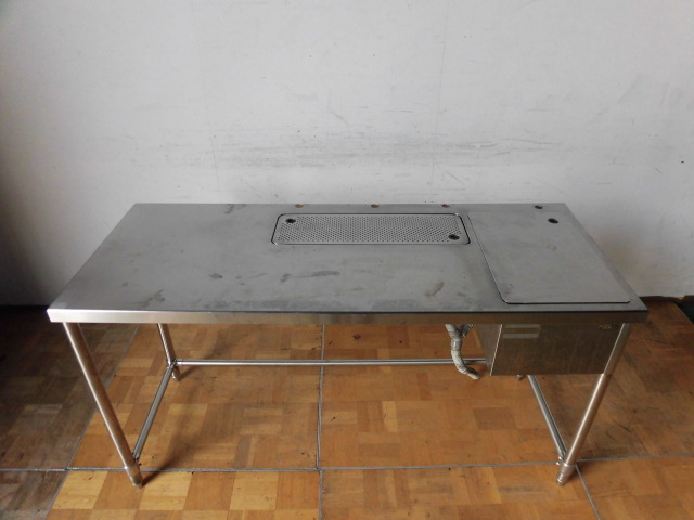 中古厨房 タニコー 業務用 ステンレス 三方枠 シンク付き 水切り台 作業台 W1500×D600×H790mm 調整脚+35mm シンク深さ195mm 飲食店 店舗