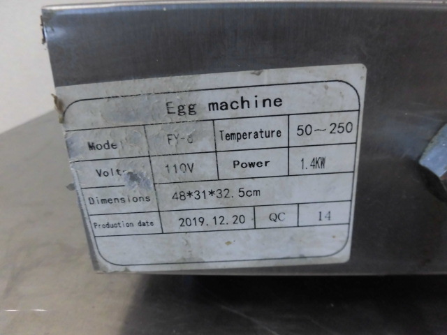 中古厨房 卓上 電気 Egg Machine エッグマシン FY-6 ワッフルメーカー 100V ワッフルマシーン ベビーカステラ スイーツ 2019年製