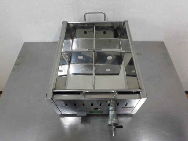 美品 中古厨房 ワクイ 業務用 おでん鍋 4ツ仕切り 都市ガス 直火式 ステンレス おでんウォーマー W330×D420(520)×H230mm 蓋 取説 居酒屋