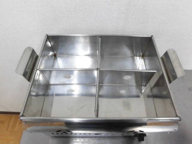 中古厨房 山岡金属 業務用 おでん鍋 4ツ仕切り 都市ガス 直火式 ステンレス おでんウォーマー 金剛-24 W400×D300×H290mm 蓋 店舗 居酒屋