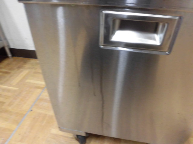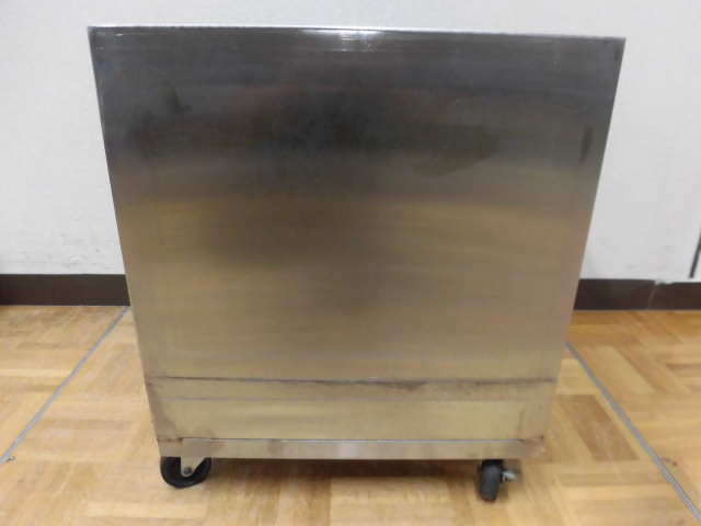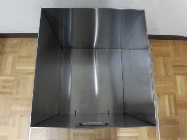 中古厨房 業務用 ステンレス ストッカー ボックス 移動式 収納 カート ダストボックス 蓋付 キャスター W430×D460×H540mm (1)