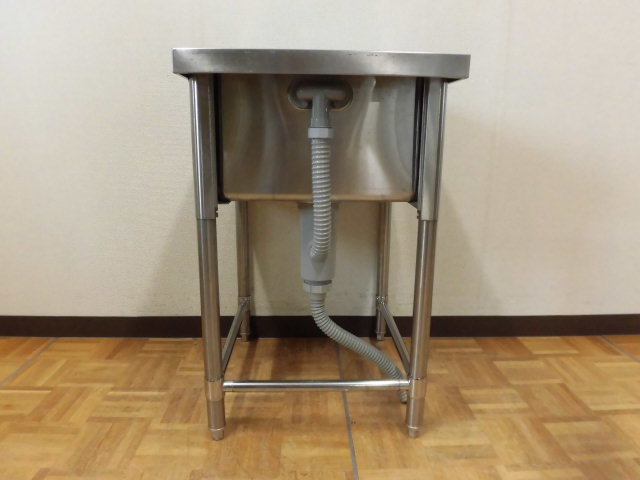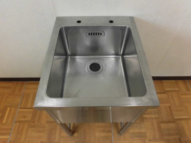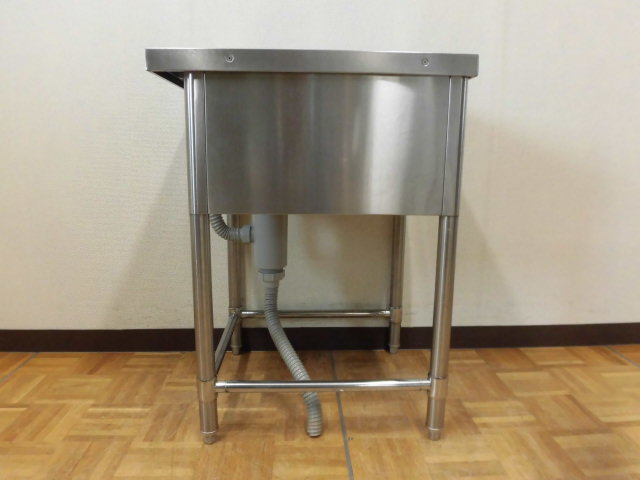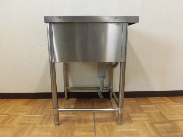 中古厨房 業務用 ステンレス 三方枠 1槽シンク W500×D600×H800mm 調整脚+25mm 深さ260mm 店舗 飲食店 洗い場