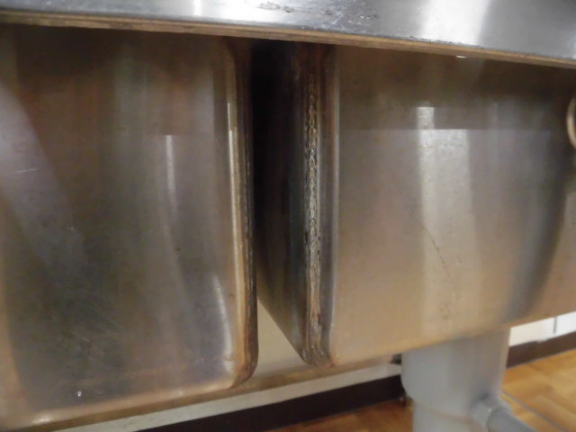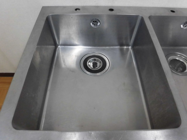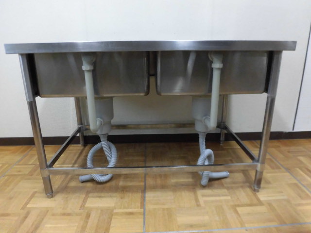 中古厨房 業務用 2槽シンク 流し台 ステンレス W1200×D750×H800mm 調整脚+30mm 深さ240mm 店舗 飲食店 洗い場